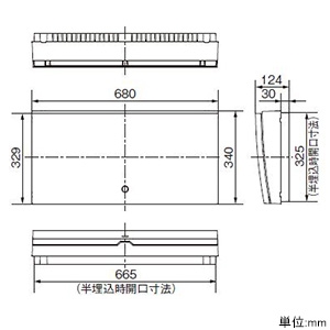 ●半埋込寸法(mm):タテ325×フカサ30×ヨコ665