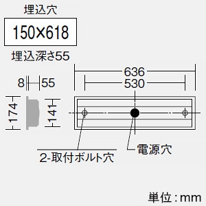 ●器具寸法(mm):巾 174、長 636、埋込深 55、出 8