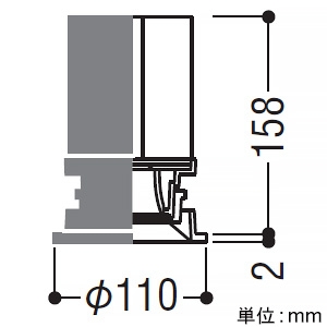 ●器具寸法(mm):径 φ110、出幅 2、埋込高 158