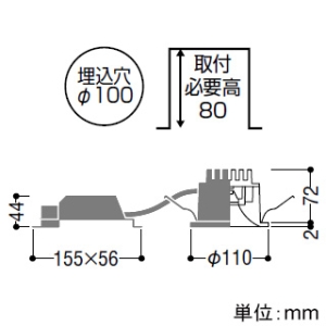 ●サイズ(mm):幅 φ110、出幅 2、埋込高 72、取付必要高 80