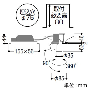 ●サイズ(mm):幅 φ85、出幅 64、埋込高 46、取付必要高 80