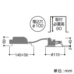 ●サイズ(mm):幅 φ110、出幅 3、埋込高 45
