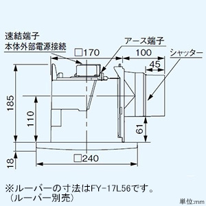 パナソニック 天井埋込形換気扇 ルーバー別売タイプ 低騒音形 24時間常時換気 強・弱速調付 埋込寸法177mm角 適用パイプφ100mm 換気スイッチ付 FY-17J8VC