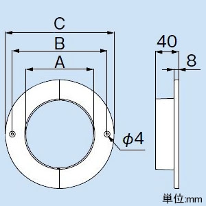 ●寸法(mm):A 116、B 162、C 186