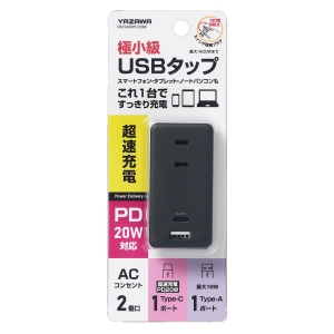 YAZAWA(ヤザワ) 極小USBタップ 2個口 PD20W 黒 H5FS400PD20BK