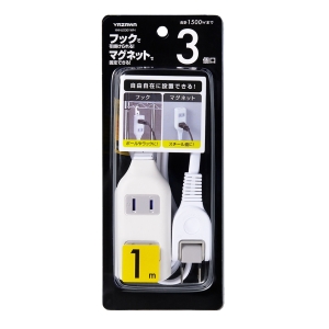 YAZAWA(ヤザワ) 裏面フックマグネット付タップ 3個口1m白 H4HJS301WH