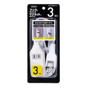 YAZAWA(ヤザワ) 裏面フックマグネット付タップ 3個口3m白 H4HJS303WH