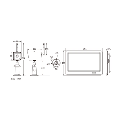 ●外形寸法 約261(W) × 175(H) x 37(D)mm