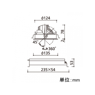 オーデリック LEDユニバーサルダウンライト M形 埋込穴φ125 HID35Wクラス LED12灯 配光角27° 非調光 本体色:オフホワイト 白色タイプ 4000K XD258141F