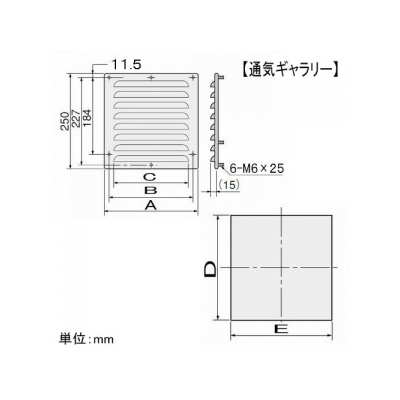 ●取付けがきわめて簡単です。パネル穴に表面から通気ギャラリーをはめ込み、裏面から押え枠をビス止めするだけで取付けができます。