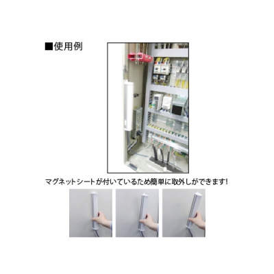 ●マグネットシートが付いている為、簡単に取り外しができ、盤内上部に限らず側面や下から照らすことも可能です。